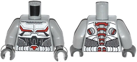 Torso Armor with Black and Red Lines on Chest and Silver Belt with Red Buckle Pattern / Light Bluish Gray Arms / Dark Bluish Gray Hands