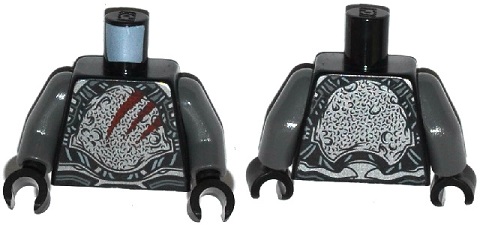 Torso Armor with Silver Exoskeleton and Dark Red Claw Scratch Marks Pattern / Dark Bluish Gray Arms / Black Hands
