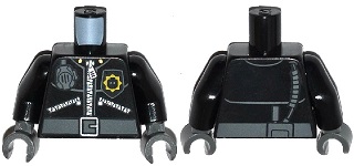Torso Police 3 Zippers, Minifigure Head Badge, Radio and Belt Pattern (Pattern on Front and Back) / Black Arms / Dark Bluish Gray Hands