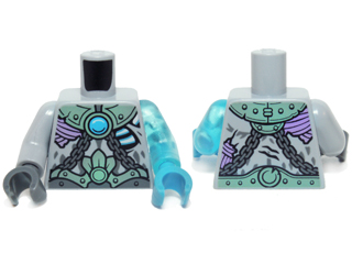 Torso Armor, Chains and Dark Azure Chi Pattern / Trans-Light Blue Arm Left / Light Bluish Gray Arm Right / Dark Azure Hand Left / Dark Bluish Gray Hand Right