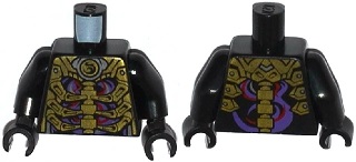 Torso Ninjago Skeleton Ribs Gold over Red and Dark Purple Swirls Pattern / Black Arms / Black Hands