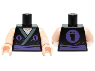 Torso Ninja Robe with Dark Bluish Gray Trim and Dark Purple Circles with TMNT Foot Clan Logo, Waist Sash, Light Nougat Neck Pattern / Light Nougat Arms / Light Nougat Hands