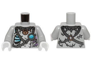 Torso Tiger Fur with Chains, Spiked Collar, Padlock and Blue Round Jewel (Chi) Pattern / Light Bluish Gray Arms / White Hands