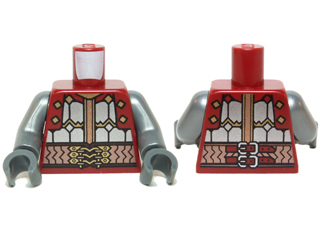 Torso LotR Metallic Silver Armor, Copper Belt with Gold Bindings and Red Straps Pattern / Flat Silver Arms / Dark Bluish Gray Hands