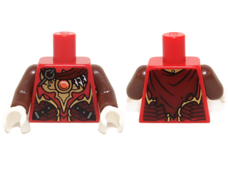Torso Vest with Dark Red and Gold Armor with Black Straps, Scales, Fire Chi Emblem and Cape with Buckle Pattern / Reddish Brown Arms / White Hands