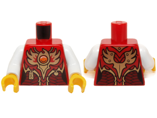 Torso Female Vest with Dark Red and Gold Armor with Pendants, Scales, and Orange Round Jewel (Fire Chi) Emblem Pattern / White Arms / Yellow Hands