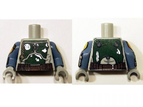 Torso SW Mandalorian Armor Plates Dark Green Pattern Dual Sided (Boba Fett), Large Emblem on Chest / Sand Blue Arms Printed / Light Bluish Gray Hands
