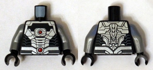 Torso Black and Silver Armor Plating with 2 Red Circles Pattern (Cyborg) / Flat Silver Arms / Black Hands
