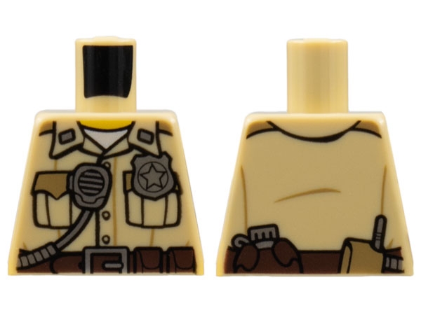 Torso Police Shirt with Pockets, Silver Radio and Badge, Brown Belt with Canteen and Phone Pattern