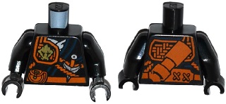 Torso Ninjago Robe with Belt with Pouch, Knife, Scabbard and Earth Power Emblem Pattern / Black Arms / Black Hands