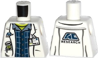 Torso Lab Coat with Pockets and ID Badge over Plaid Shirt and Lime Top and 'AC RESEARCH' on Back Pattern