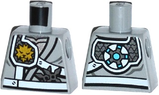 Torso Ninjago Shoulder Protection with White Straps and Gold Lion Emblem over Robes, Shurikens in Belt Pattern