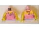 Torso Female Top with Dark Pink Stripes and Flower Necklace Pattern / Yellow Arms / Yellow Hands