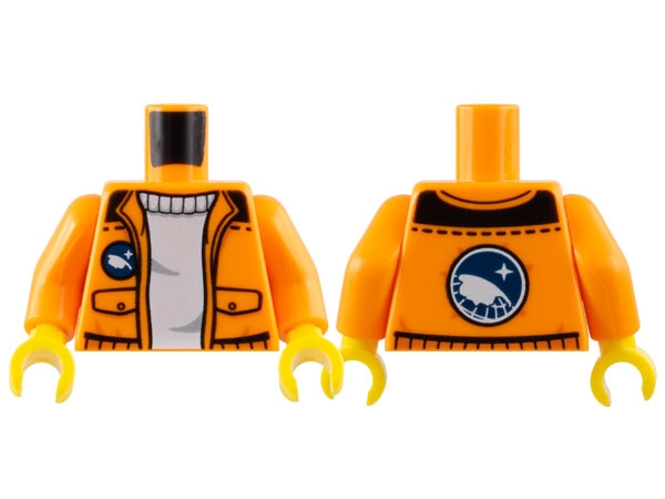 Torso Jacket with Pockets over White Sweater, Arctic Explorer Logo on Reverse Pattern / Orange Arms / Yellow Hands