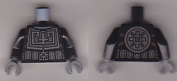 Torso Ninjago Silver Breastplate, Belt and Circle Emblem on Reverse Pattern / Black Arms / Dark Bluish Gray Hands