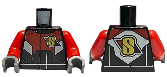 Torso Racing Suit with Red and White Chest and Back Panel with Yellow 'S' Logo Pattern / Red Arms / Dark Bluish Gray Hands