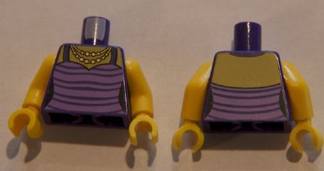 Torso Female Top with Dark Purple Stripes and Gold Necklace Pattern / Yellow Arms / Yellow Hands