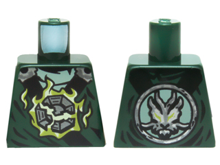 Torso Ninjago Black and Silver Straps, Broken Emblem with Yellowish Green Flames, Round Silver Emblem on Back Pattern