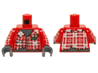 Torso Plaid Shirt Ripped with Buttons and 'Kel' on Chest, Dark Bluish Gray Skin Pattern / Red Arms with Plaid Shirt with Green Dotted Lines Pattern / Dark Bluish Gray Hands