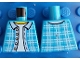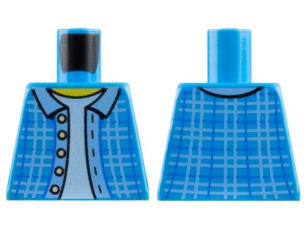 Torso Plaid Jacket with Bright Light Blue Hem and Collar and Light Bluish Gray Buttons over White Shirt, Yellow Neck Pattern