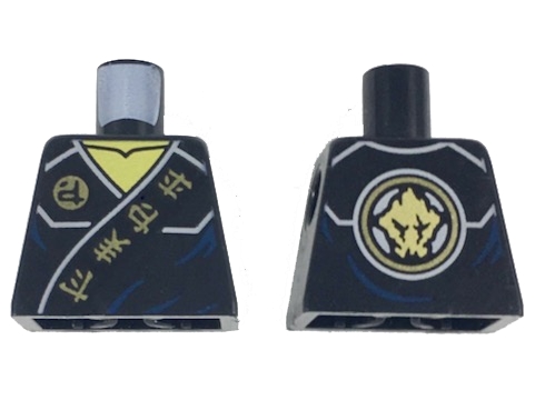 Torso Ninjago Robe with Gold Ninjago Logogram 'Fire Earth Lightning Energy' on Black Sash Pattern