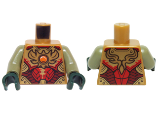 Torso Vest with Dark Red and Gold Armor Elaborate with Scales and Side Panels and Fire Chi Emblem Pattern / Olive Green Arms / Dark Green Hands