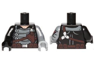 Torso Gray Armor with Holster Pattern (Winter Soldier) / Flat Silver Arm Left with Red Star Pattern / Black Arm Right / Light Bluish Gray Hand Left / Black Hand Right