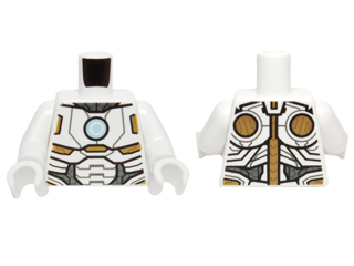 Torso Armor with Light Blue Circle and Gold and White Plates Pattern (Space Iron Man) / White Arms / White Hands