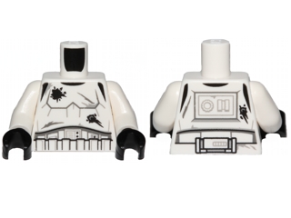 Torso SW Armor Stormtrooper, Detailed Armor without Shoulder Belts, Battle Damage with Scratches and Holes Pattern / White Arms / Black Hands
