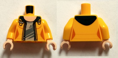 Torso Female Jacket Open with Dark Blue Hood over Light Bluish Gray Shirt and Light Nougat Neck Pattern / Bright Light Orange Arms / Light Nougat Hands