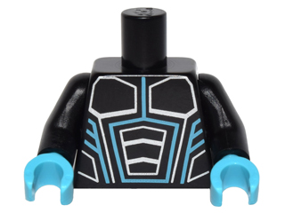 Torso Robot Armor with Medium Azure and Silver Lines Pattern / Black Arms / Medium Azure Hands