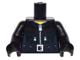 Torso Female Outline Jacket with Dark Blue Seams, Silver Zippers and Utility Belt with Silver Buckle Pattern / Black Arms / Black Hands