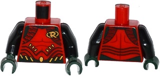 Torso Batman 'R' Symbol, Body Armor with Muscles Outline and Dark Green and Gold Belt Pattern / Black Arms / Dark Green Hands