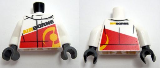 Torso Racing Jacket with Red Panel and 'AIRBORNE' on Front and Back Pattern / White Arms / Dark Bluish Gray Hands