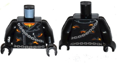Torso Leather Jacket with Holes with Flames and Silver Chains Pattern / Black Arms / Black Hands