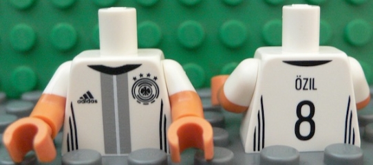 Torso Soccer Shirt with Adidas Logo, 4 Stars and Eagle Front, 'ÖZIL 8' Back Pattern / Nougat Arms with Molded White Short Sleeves Pattern / Nougat Hands