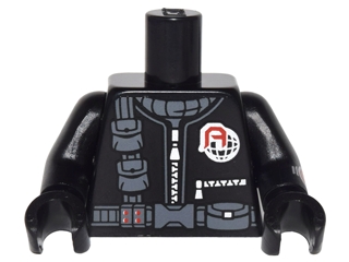 Torso Jumpsuit with Silver Zippers, Dark Bluish Gray Belt and Pouches Pattern / Black Arm Left with Stopwatch Pattern / Black Arm Right / Black Hands