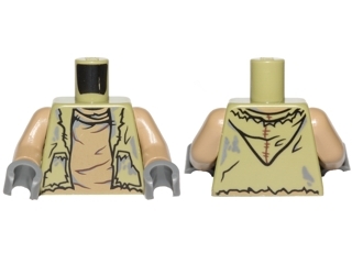 Torso Vest Tattered, Dirty with Hood and Dark Tan Creased Undershirt Pattern / Dark Tan Arms / Dark Bluish Gray Hands