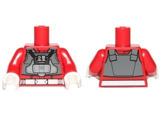 Torso SW Rebel A-wing Pilot Uniform, Dark Bluish Gray Vest with Light Bluish Gray Pocket and Black Panel, White Belt Pattern / Red Arms / White Hands