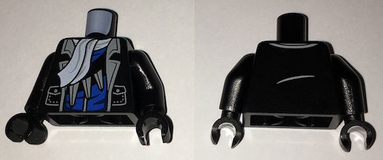 Torso Batman Jacket over Blue Shirt with White Scarf, Sash with Boomerangs Pattern / Black Arms / Black Hands