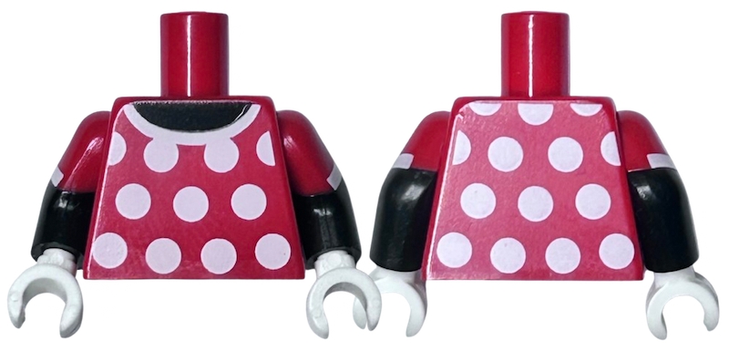 Torso Red Dress Top with White Collar and Polka Dots Front and Back Pattern / Black Arms with Red Short Sleeves with White Cuff Pattern / White Hands