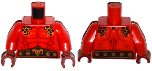 Torso Nexo Knights Bare Chest with Black Spots And Belt with Gold Jester Head Buckle Pattern / Red Arms / Dark Red Hands