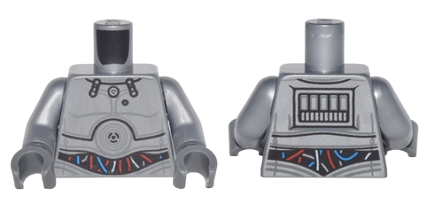 Torso SW Protocol Droid with Red, Blue and Flat Silver Wires Pattern / Flat Silver Arms / Dark Bluish Gray Hands