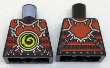 Torso Ninjago Red Armor with Lime Swirl Medallion Front, Belts on Back Pattern