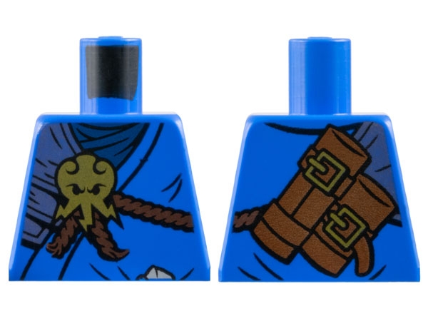 Torso Ninja Robe over Dark Blue Wrap, Silver Shoulder Armor, Reddish Brown Rope, Gold Lightning Octopus Symbol, Scabbards with Buckles on Back Pattern