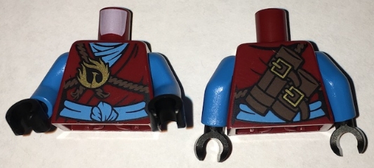 Torso Ninjago Brown Rope, Gold Phoenix Medallion and Dark Azure Sash Front, Scabbards on Back Pattern / Dark Azure Arms / Black Hands
