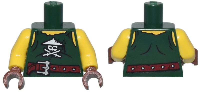 Torso Tank Top Tattered with White Ninja Skull with Crossed Swords, Dark Red Belt with Silver Buckle, Yellow Shoulders and Neck Pattern / Yellow Arms / Reddish Brown Hands