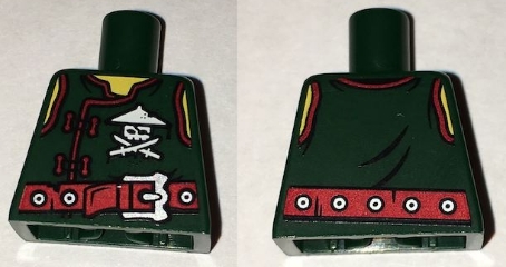 Torso Ninjago Vest with Red Clasps, Ninja Skull with Crossed Swords and Red Belt with Silver Buckle Pattern