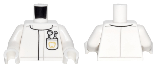 Torso Lab Coat with Pocket with Dentist Mirror and Pick and Gold Tooth Pattern / White Arms / White Hands