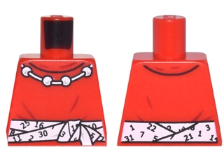 Torso Shirt with Round Collar, Necklace with 4 Beads and White Tied Belt with Calendar Numbers Pattern
